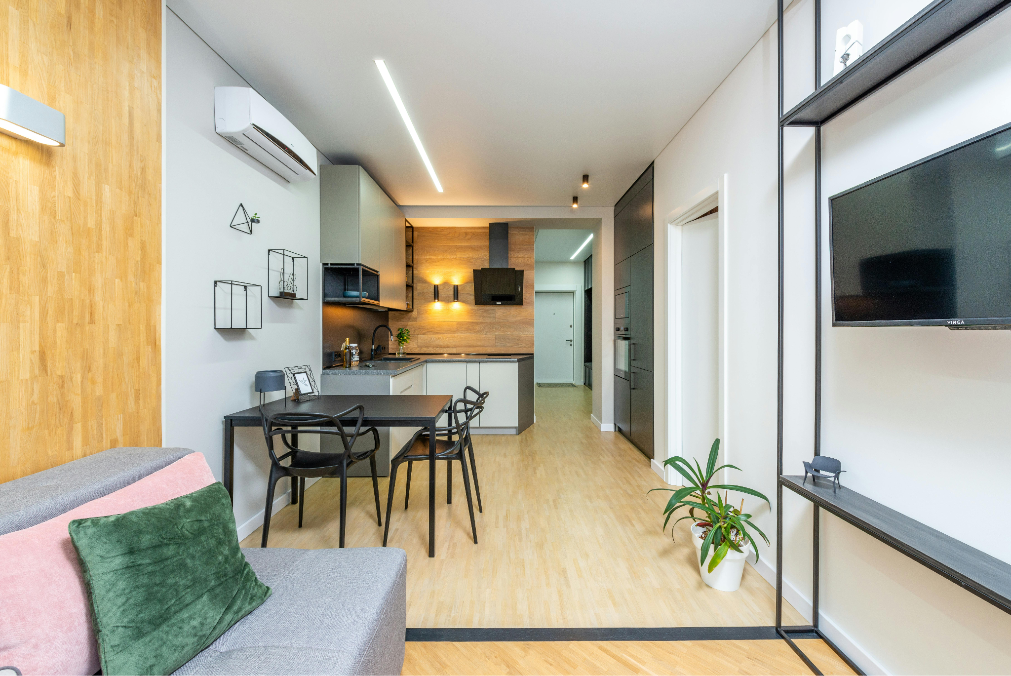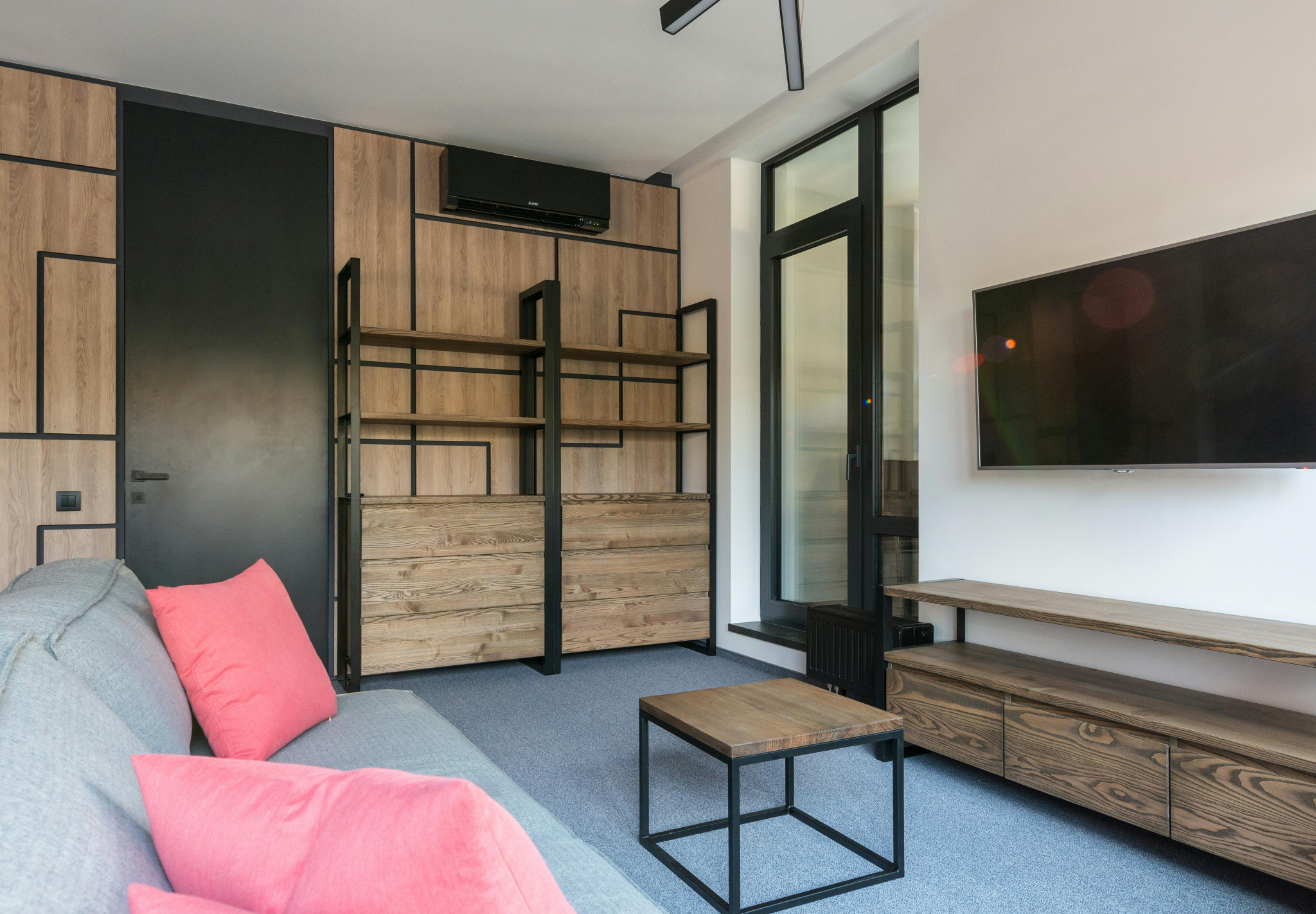 В собственном доме или квартире лучший из возможных вариантов — настенная сплит-система. Это тихий, функциональный и эффективный прибор, который ещё и смотрится в интерьере довольно эстетично. Из нюансов — недешёвая установка, которая должна производиться только высококвалифицированными специалистами.